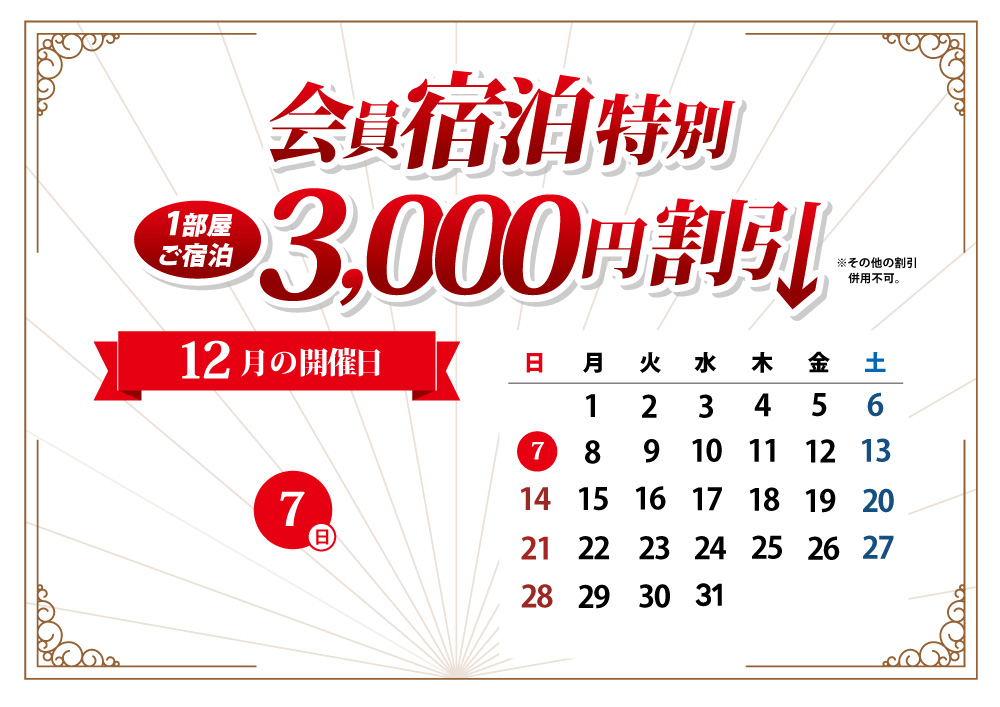 会員限定、宿泊特別割引フェア開催!(12月)