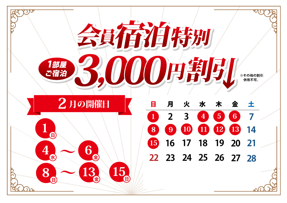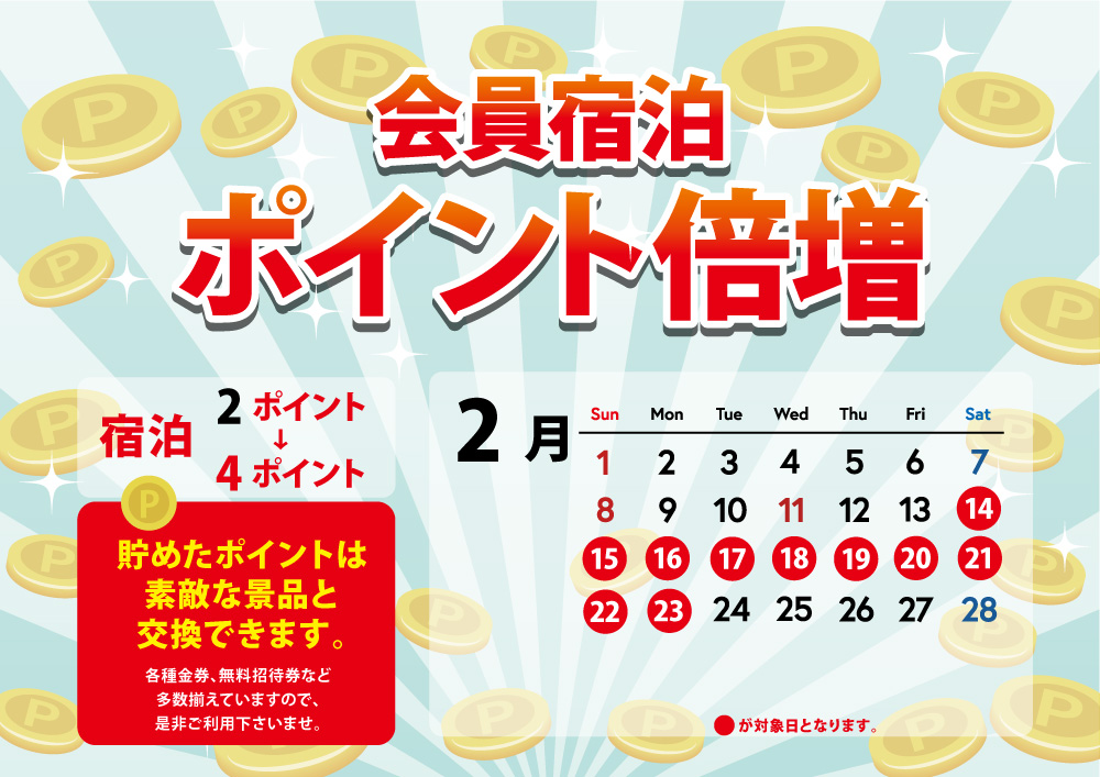 会員様限定、宿泊ポイント倍増フェア開催!(2月)
